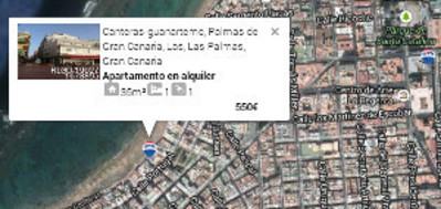 Sin salir del mapa se puede visualizar cómodamente la información general de cada propiedad (tipo de inmueble, superficie, precio, etc.) y acceder a la información de detalle (descripciones, fotos, etc.) en caso necesario.