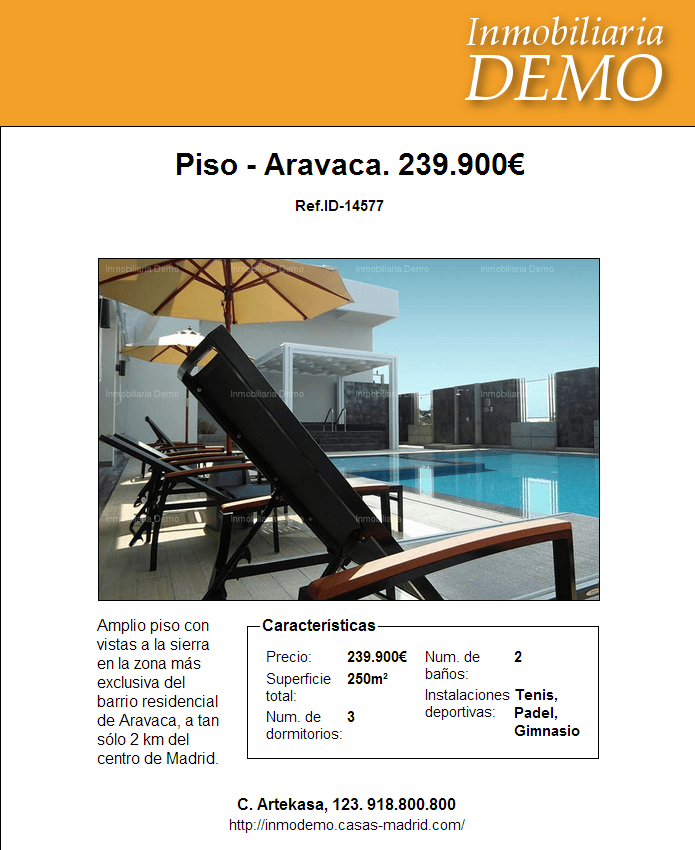 Con Artekasa también podrás generar folletos de propiedades para imprimir flyers, publicar anuncios en prensa, hacer buzoneo, etc. Incluyen códigos QR, multi-idioma y varios formatos. Puedes personalizar el idioma en el que quieres que se generen, así como seleccionar propiedades específicas, tipos de propiedad, precios, etc.