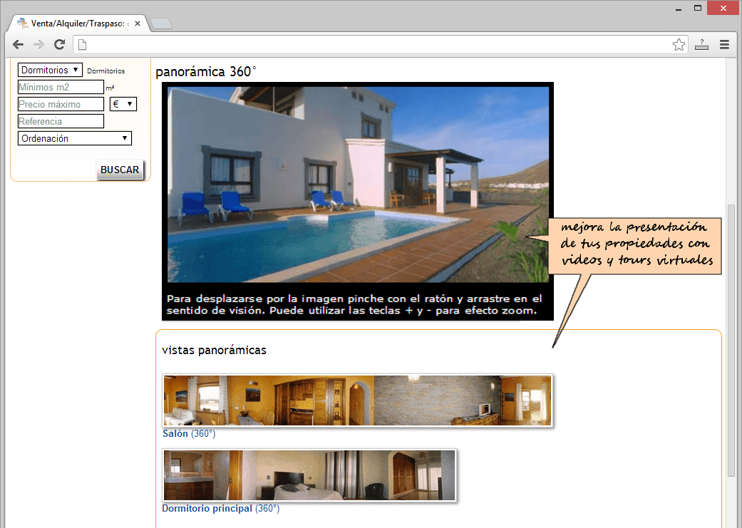 Artekasa utiliza tecnologías multimedia para mejorar la presentación de tus propiedades, mediante tours virtuales de 360º e integración de videos de Youtube.com.